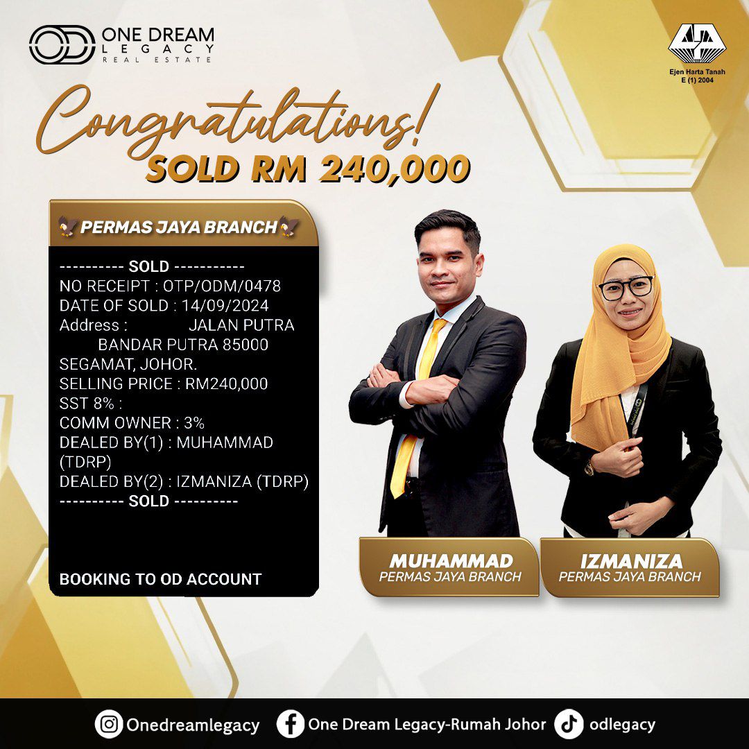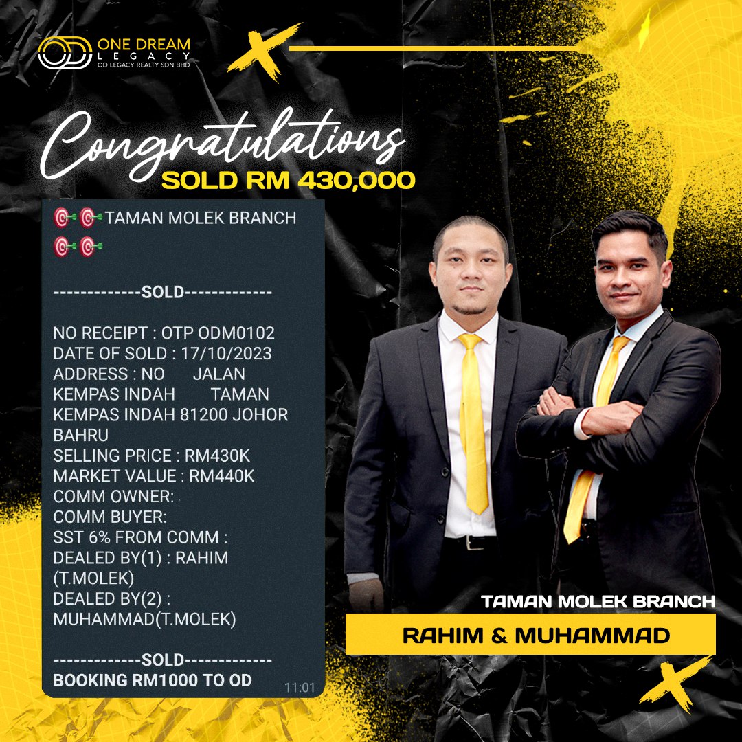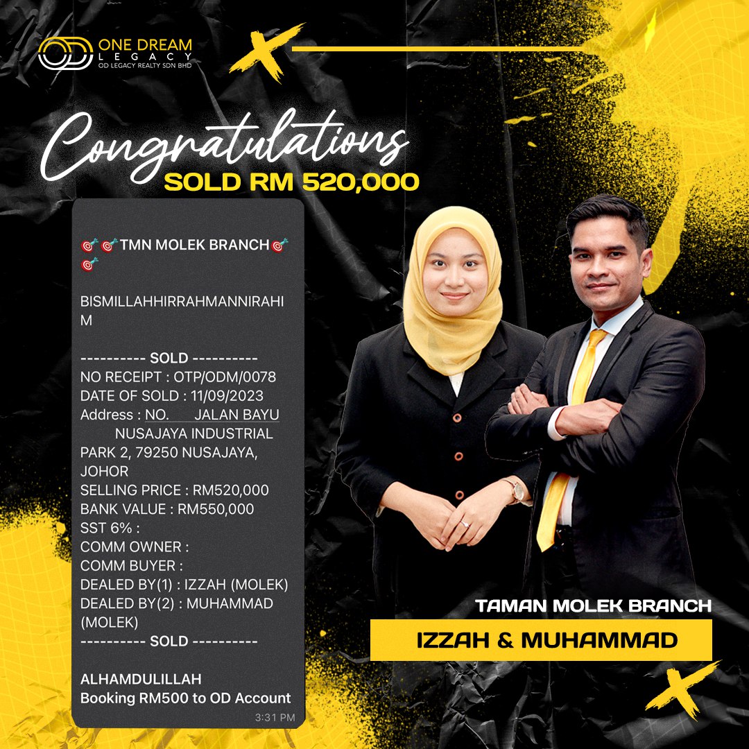 Bermula daripada itu, saya terus komited membantu klien menjual, menyewa dan menguruskan hartanah mereka, terutamanya di sekitar Johor Bahru dan sekitar.